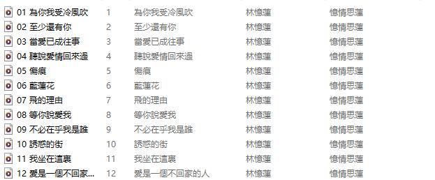 林忆莲 《忆情思莲.为爱精选》1:1母盘直刻[FLAC分轨] 华语女歌手 下载地址:(如何下载网盘资源) 点击下载无损专辑CD 查看密码:123123 24bit音乐和16bit音乐及多音乐编码格式的解析 本站一切资源来自互联网,下载本站资源不需要注册,完全免费去城通网盘下载(网盘的VIP会员与我们无关 ),不懂、不了解网盘是什么的请放弃下载。 0 林忆莲